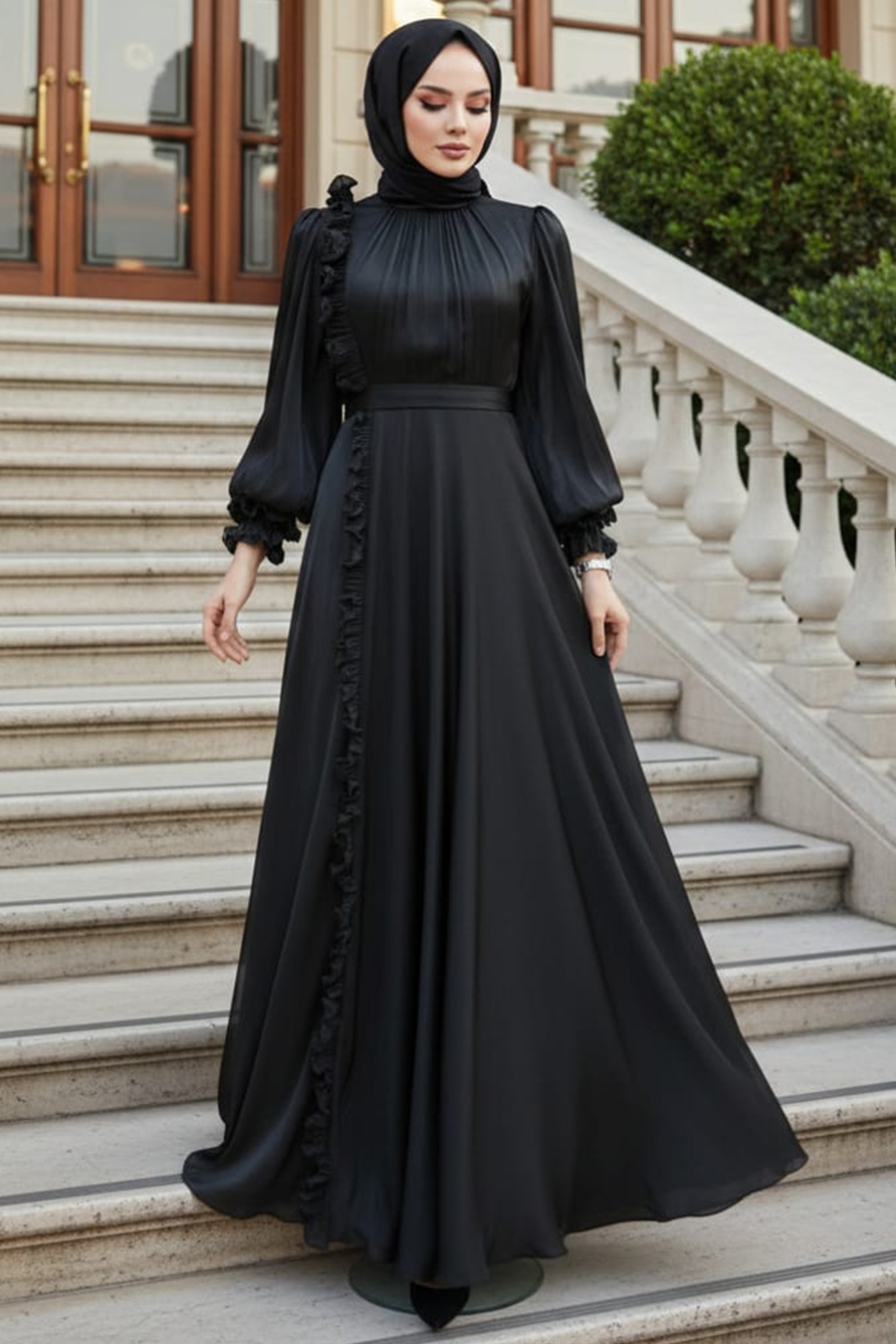Ürün Rengi: Siyah- Life Style çekimlerden dolayı ürün renginde ton farkı olabilir Sipariş İçeriği: Bu ürün kombin değildir. Sadece abiyeden oluşmaktadır. Numune Bedeni: 38 Yıkama:30 derecede sıktırmadan yıkanabilir.