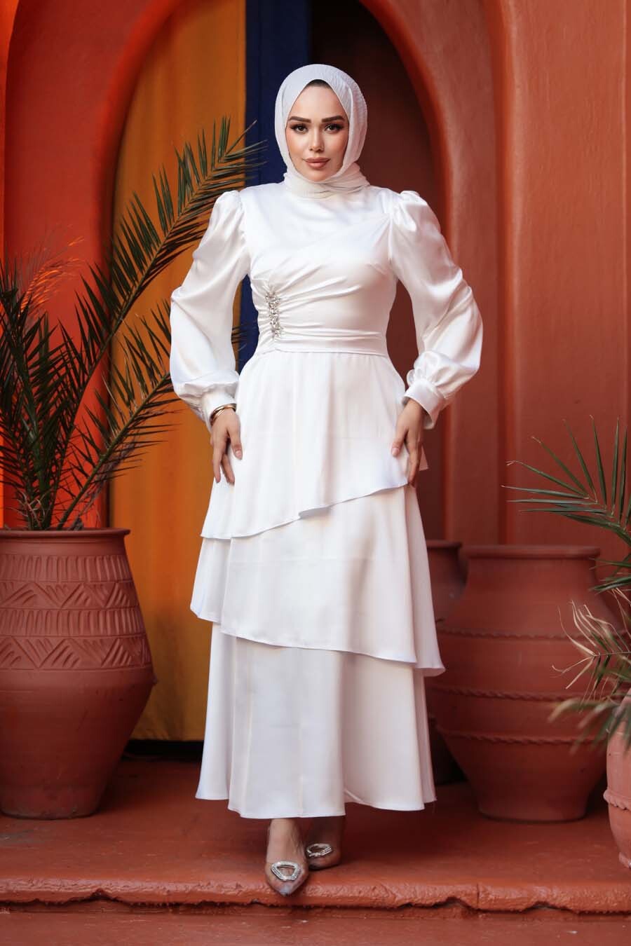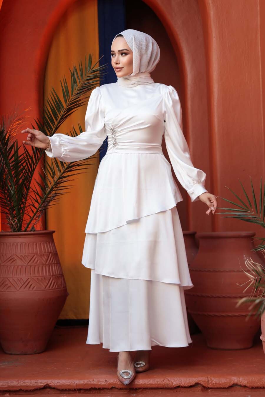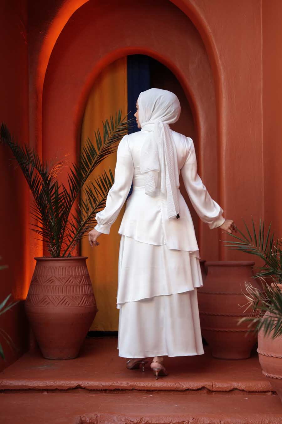 Ürün Rengi: Beyaz- Life Style çekimlerden dolayı ürün renginde ton farkı olabilir Sipariş İçeriği: Bu ürün kombin değildir. Sadece abiyeden oluşmaktadır. Numune Bedeni: 38 Yıkama: Yalnızca kuru temizleme yapılabilir.