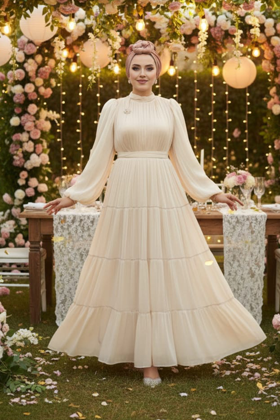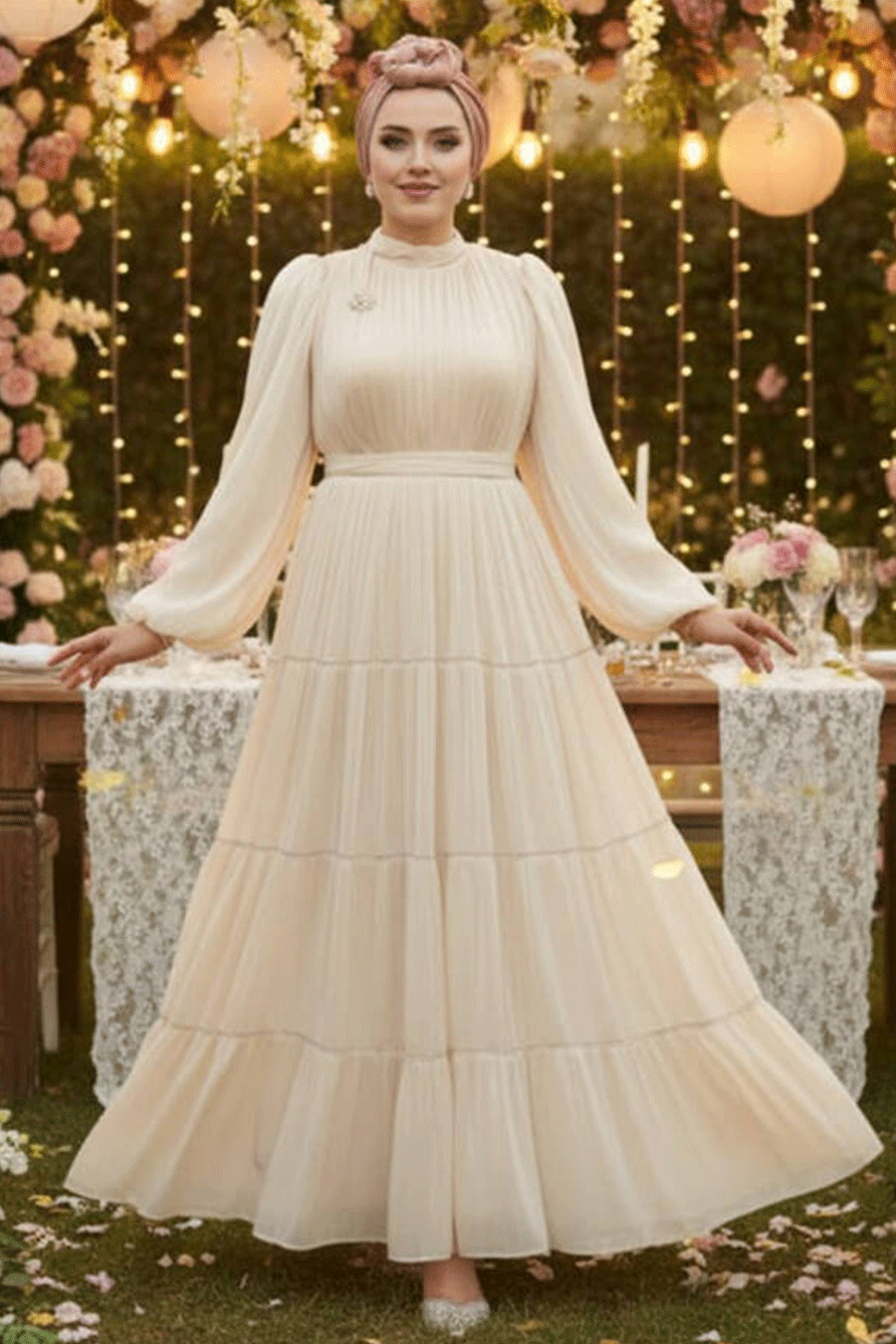 Ürün Rengi: Bej- Life Style çekimlerden dolayı ürün renginde ton farkı olabilir Sipariş İçeriği: Bu ürün kombin değildir. Sadece abiyeden oluşmaktadır. Numune Bedeni: 38