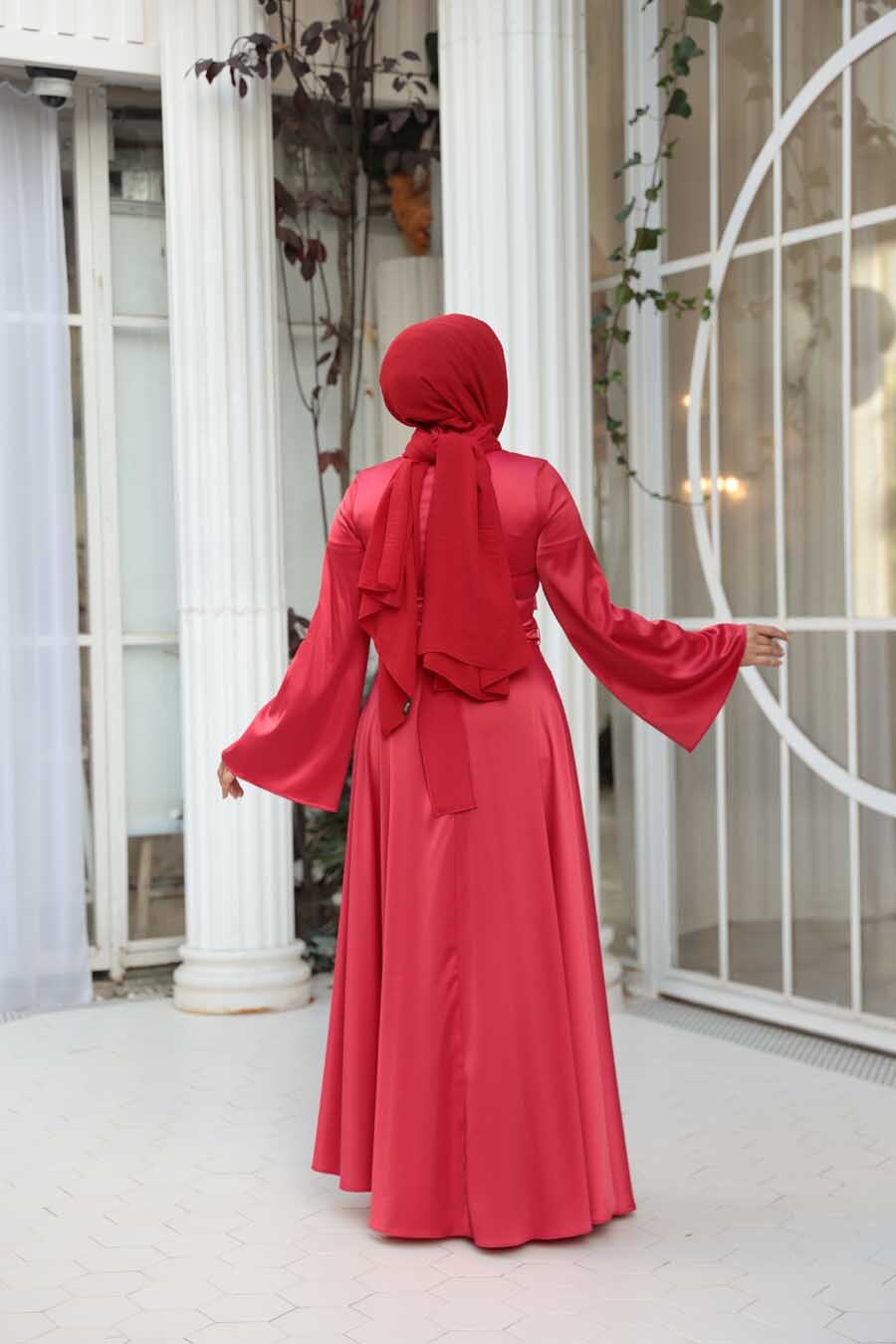 Ürün standart kalıp olup normalde kullandığınız bedeni sipariş vermeniz tavsiye olunur. Özel günler, düğün, nişan, söz, davet ve mezuniyet için aradığınız tesettürlü abiye elbisedir.