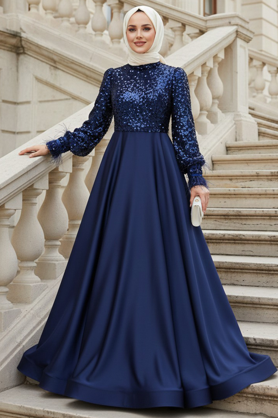 Ürün standart kalıp olup normalde kullandığınız bedeni sipariş vermeniz tavsiye olunur. Özel günler, düğün, nişan, söz, davet ve mezuniyet için aradığınız tesettürlü abiye elbisedir.