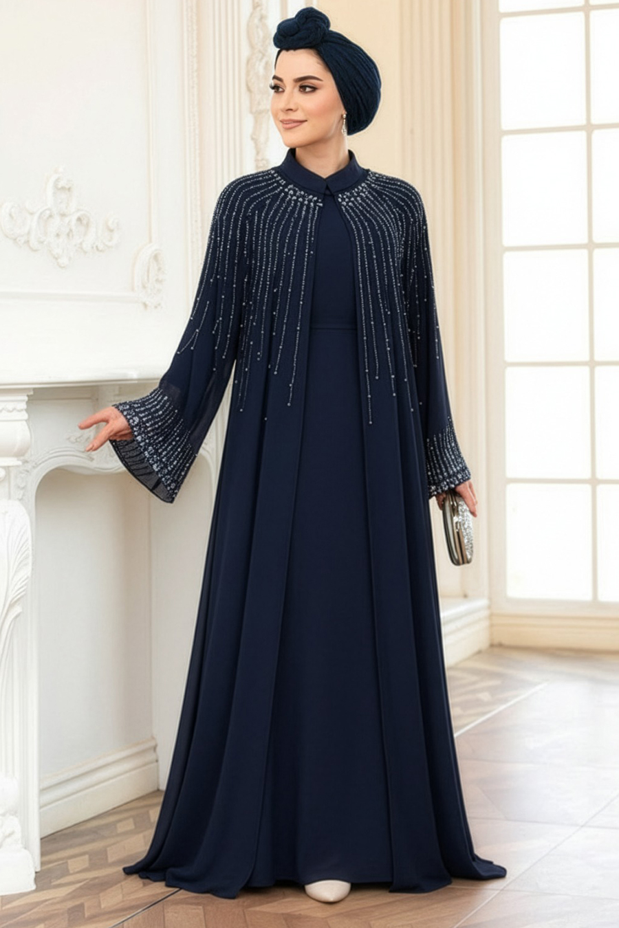 Ürün Özelliği: Hakim yaka, uzun kollu, boncuk işlemeli, pelerin detaylı ve astarlıdır.