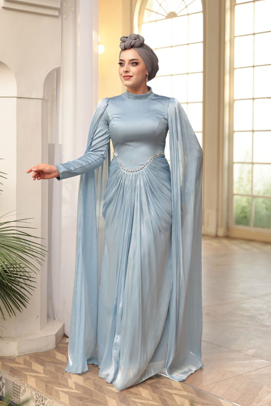 Ürün standart kalıp olup normalde kullandığınız bedeni sipariş vermeniz tavsiye olunur. Özel günler, düğün, nişan, söz, davet ve mezuniyet için aradığınız tesettürlü abiye elbisedir.