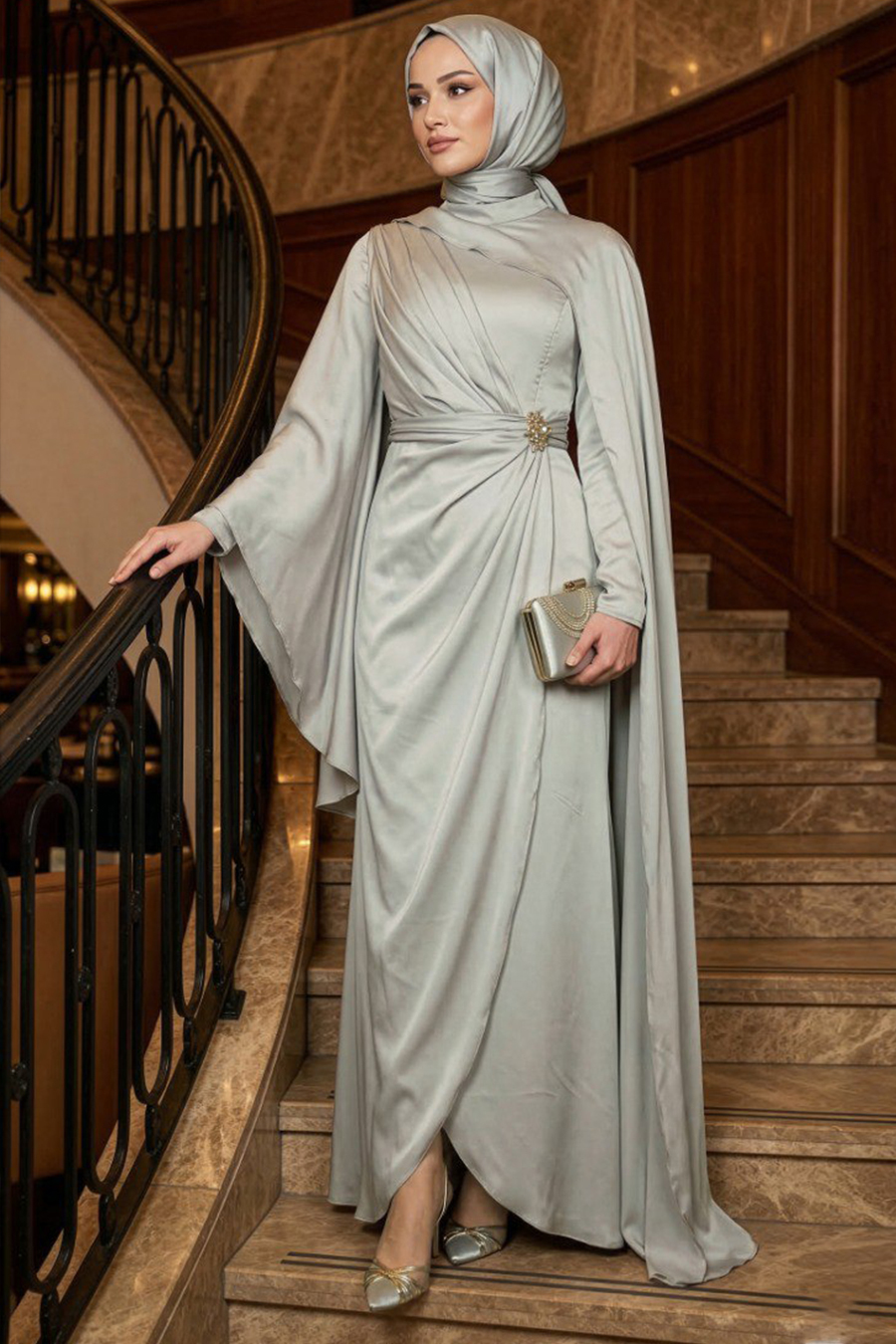 Ürün standart kalıp olup normalde kullandığınız bedeni sipariş vermeniz tavsiye olunur. Özel günler, düğün, nişan, söz, davet ve mezuniyet için aradığınız tesettürlü abiye elbisedir.