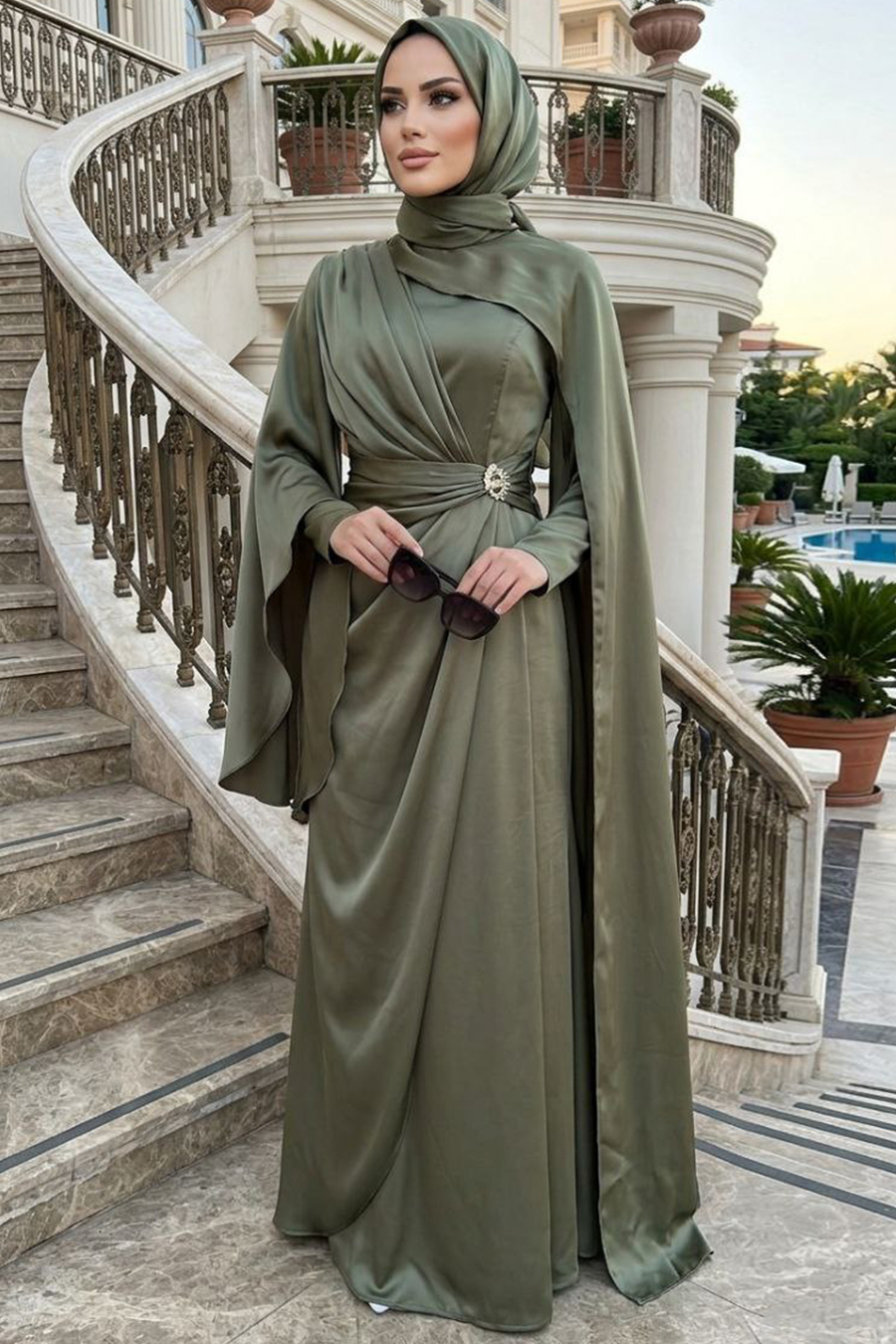 Ürün standart kalıp olup normalde kullandığınız bedeni sipariş vermeniz tavsiye olunur. Özel günler, düğün, nişan, söz, davet ve mezuniyet için aradığınız tesettürlü abiye elbisedir.