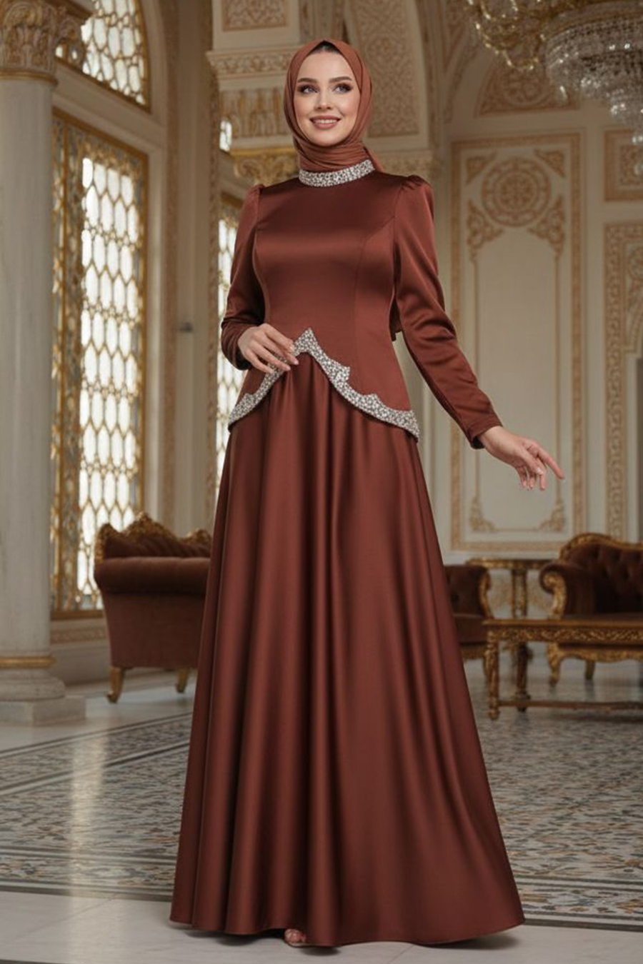 Ürün standart kalıp olup normalde kullandığınız bedeni sipariş vermeniz tavsiye olunur. Özel günler, düğün, nişan, söz, davet ve mezuniyet için aradığınız tesettürlü abiye elbisedir.