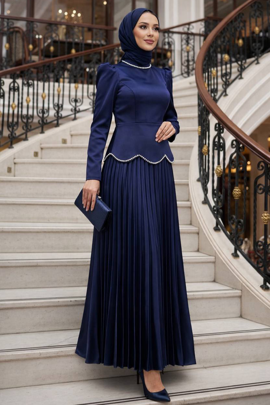 Ürün standart kalıp olup normalde kullandığınız bedeni sipariş vermeniz tavsiye olunur. Özel günler, düğün, nişan, söz, davet ve mezuniyet için aradığınız tesettürlü abiye elbisedir.