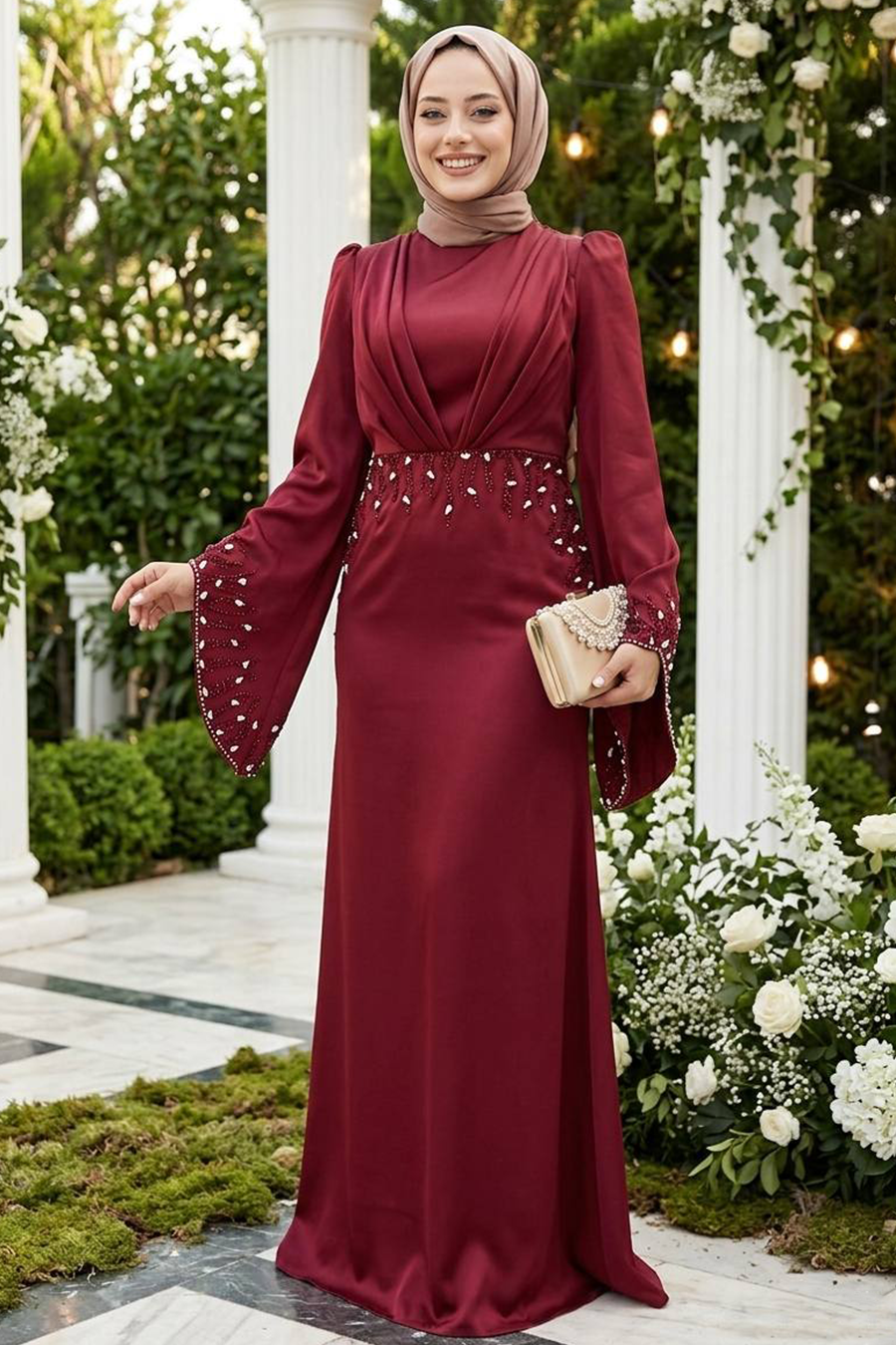 Ürün standart kalıp olup normalde kullandığınız bedeni sipariş vermeniz tavsiye olunur. Özel günler, düğün, nişan, söz, davet ve mezuniyet için aradığınız tesettürlü abiye elbisedir.