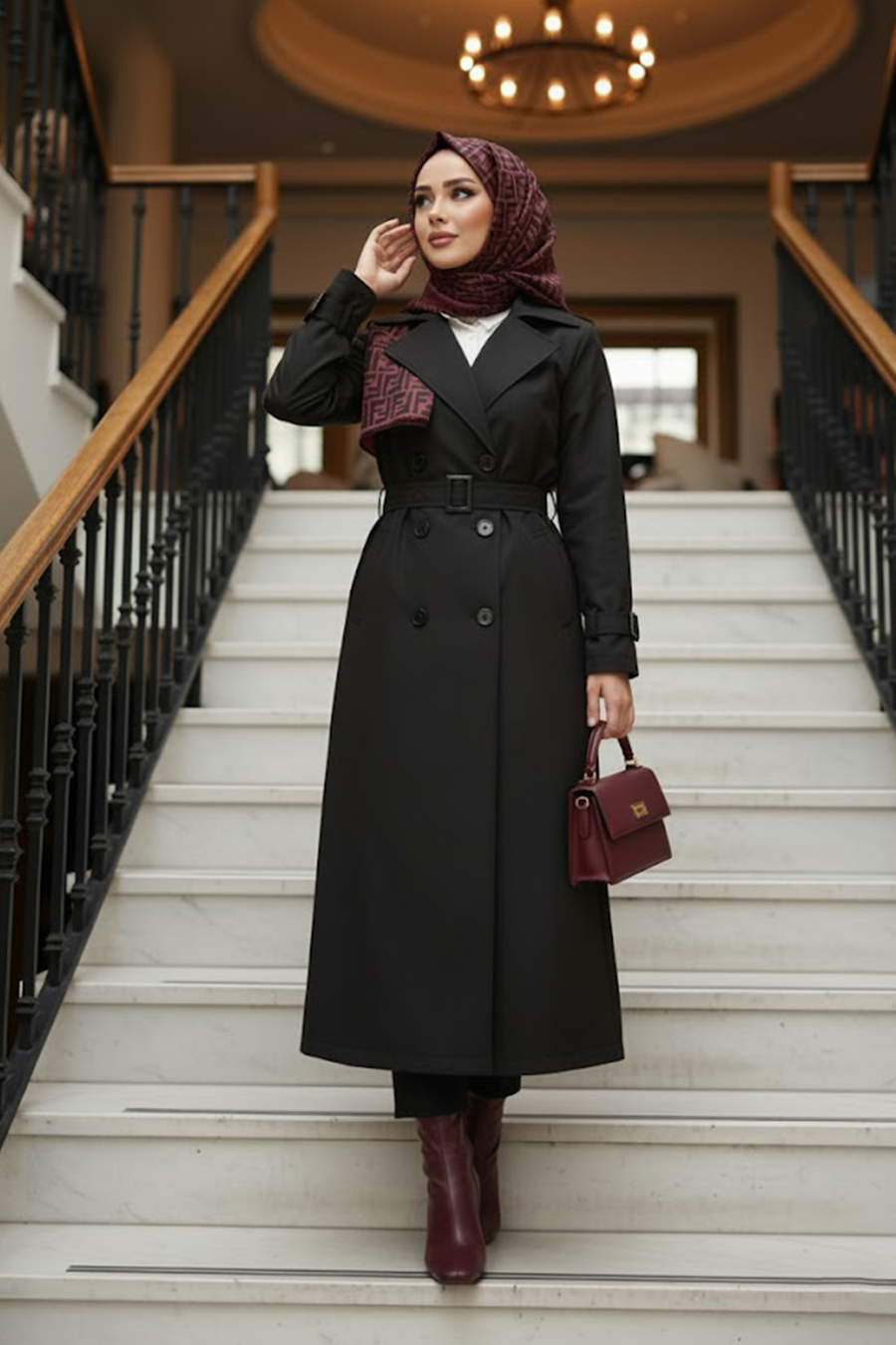 Kemerli Siyah Tesettür Trençkot 60500S