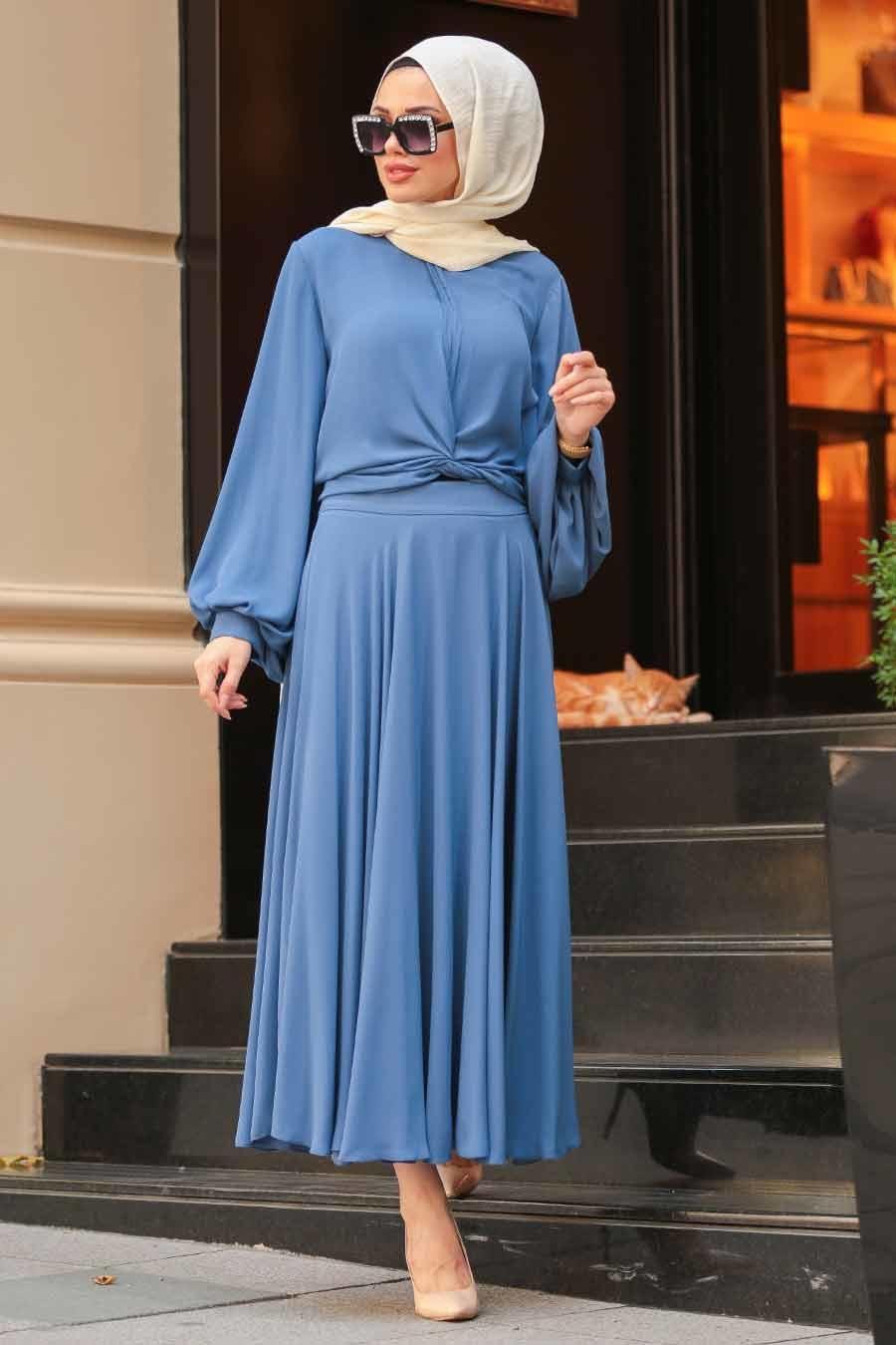 Ürün Boyu: Bluz: 50 cm Etek: 88 cm Ürün Rengi: İndigo Mavisi- Life Style çekimlerden dolayı ürün renginde ton farkı olabilir Aksesuar Numune Bedeni: 38 Yıkama: Yalnızca kuru temizleme yapılabilir.